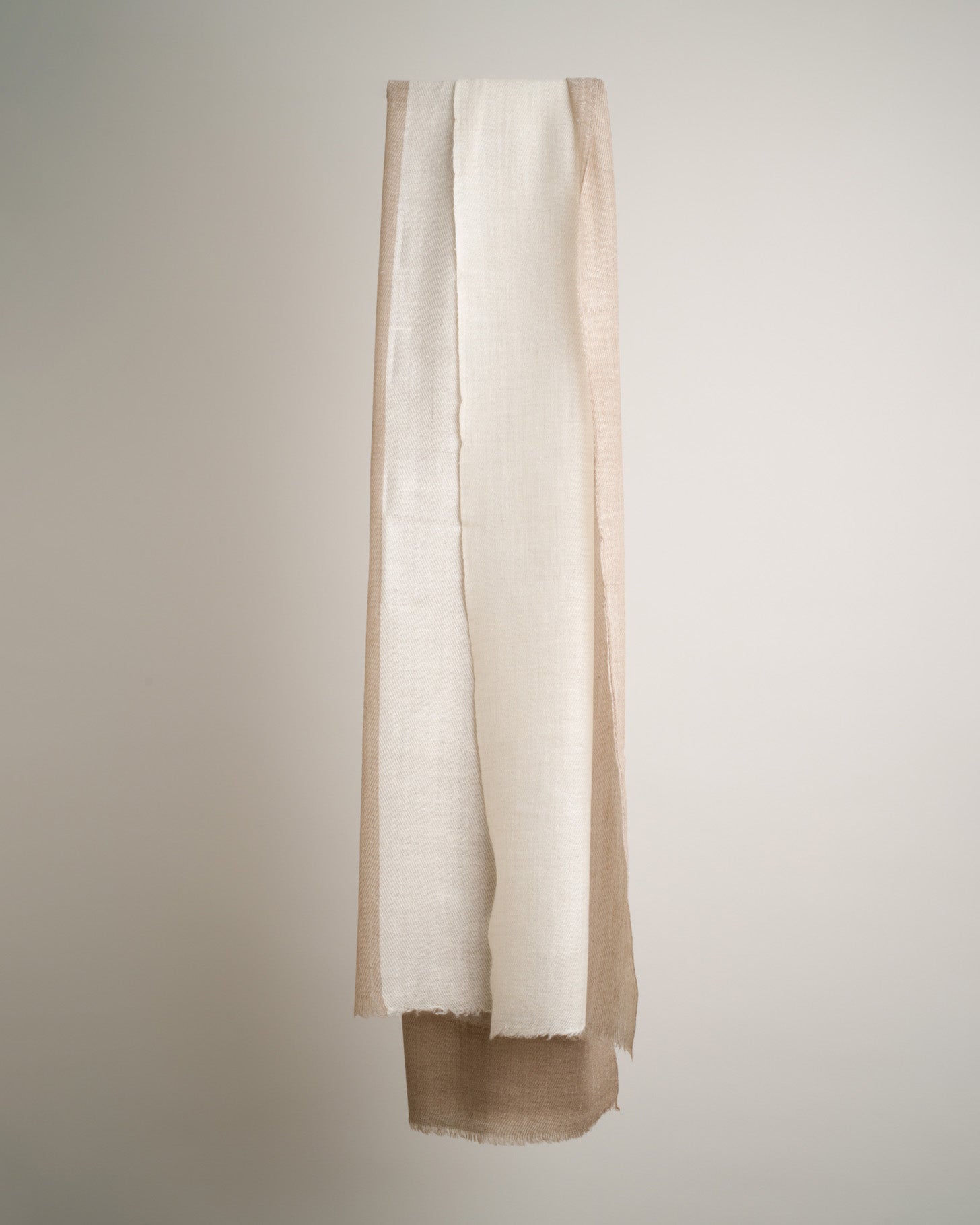 Handgewebter Schal aus feinster Merinowolle in Naturfarben, hergestellt in Kaschmir, breites Produktfoto
