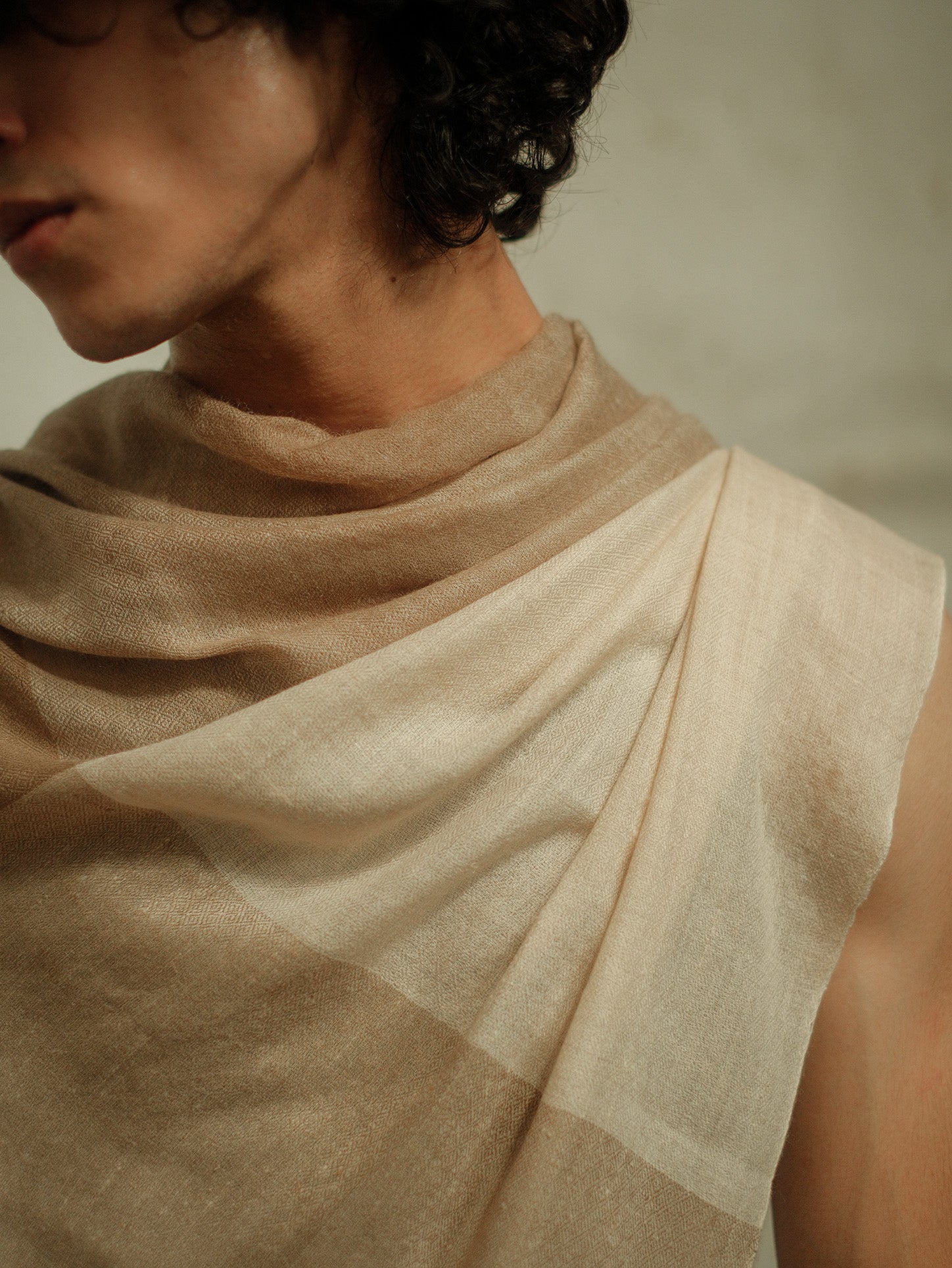 Handgewebter Schal aus feinster Merinowolle in Naturfarben, hergestellt in Kaschmir, Modelsooting